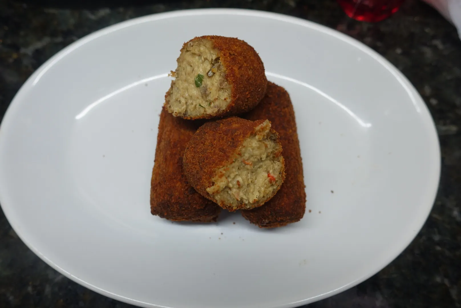 Muslito de pollo, langostino, camarones, mejillones con y sin cáscara, aros de calamar, pimiento rojo, verde, cebolla, tomate y arveja. (4hs. de antelación)